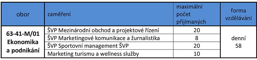 Kritéria – Mezinárodní obchod a projektové řízení (.pdf) Kritéria – Marketingové komunikace a žurnalistika (.pdf) Kritéria – Sportovní management (.pdf) Kritéria – Marketing turismu a wellness služby(.pdf)